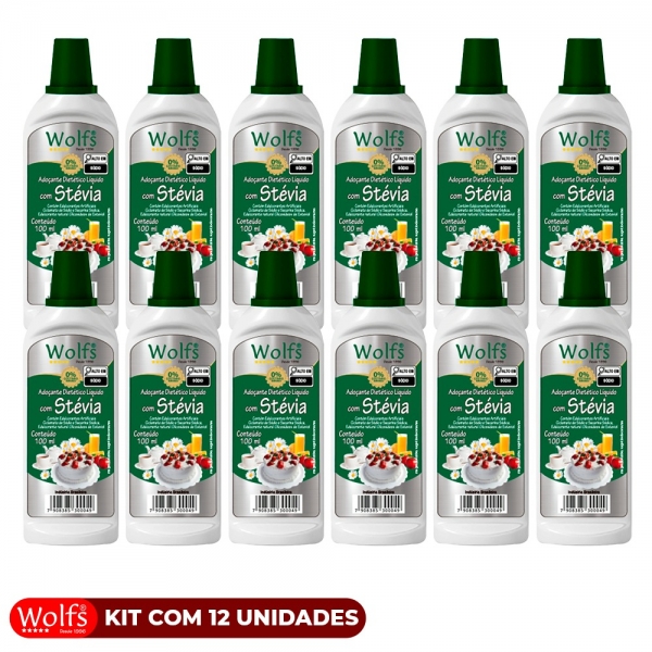 KIT COM 12 UNIDADES DE ADOCANTES WOLFS COM STEVIA 100ML